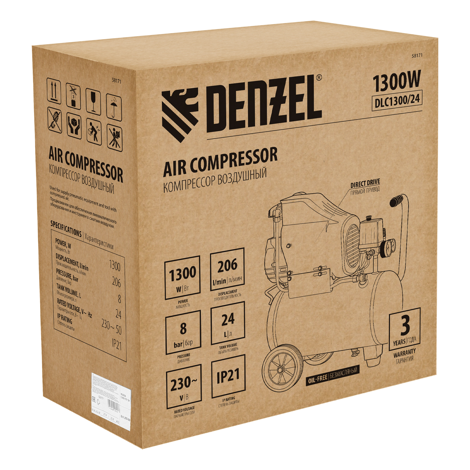Поршневой компрессор DENZEL DLC1300/24: характеристики